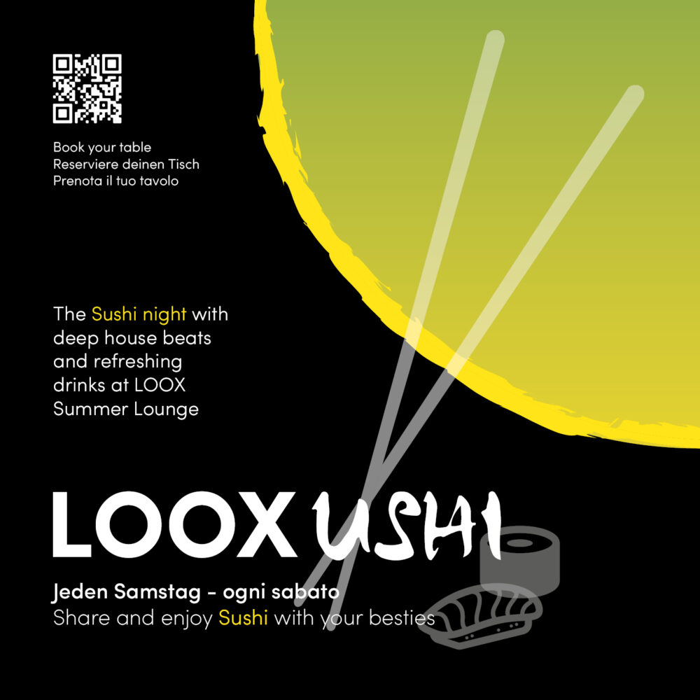 Neu! Die Sushi Night ab jetzt an jedem Samstag @ LOOX Summer Lounge in Obereggen. Komm vorbei und lass Dich überraschen. An der Main Bar im LOOX wird von unserem Sushikoch Ting Fu Cheng frisches Sushi zubereitet und dazu gibt es leckere Cocktails. Hier geht’s zum LOOXushi Menü!